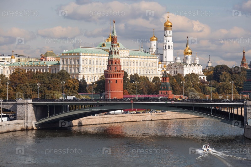 МОСКВА, РОССИЯ - 26 СЕНТЯБРЯ 2023 г.: Вид на Москву в осенний день. Столица России. Большой Кремлевский дворец. Кремлевская набережная. Москва-река. Популярная туристическая достопримечательность