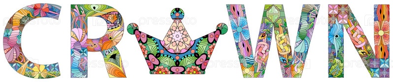 Ручная роспись художественного дизайна. Нарисованное вручную иллюстрационное слово КОРОНА для футболки и других украшений