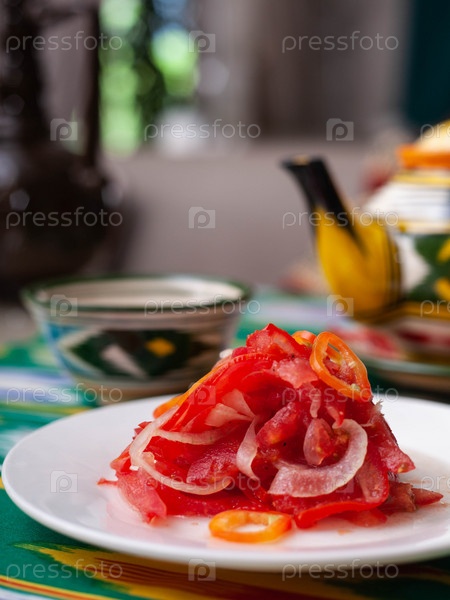 Салат из помидоров и маринованного лука по узбекскому рецепту. Азиатский стиль