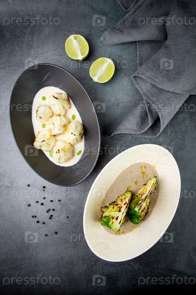Вареная цветная капуста в грибном соусе с лаймом и брокколи