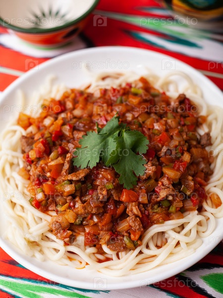 Восточное блюдо гиру лагман – это домашняя лапша, обжаренная с мясом, овощами и зеленью. Восточная кухня