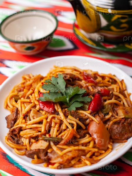 Восточное блюдо лагман – это домашняя лапша, обжаренная с мясом, овощами и зеленью. Восточная кухня