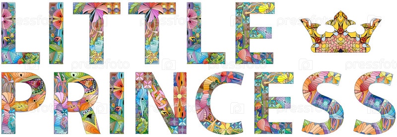 Ручная роспись художественного дизайна. Нарисованное вручную иллюстрационное слово МАЛЕНЬКАЯ ПРИНЦЕССА для футболки и других украшений