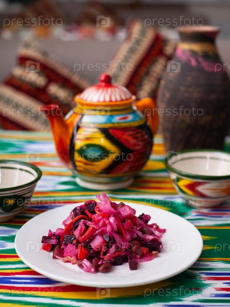 Салат «Венигрет» — свекла, картофель, лук и квашеная капуста. Азиатский стиль