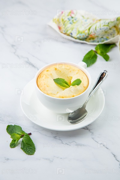 Чашка кофе с пеной и веточкой мяты на мраморном фоне