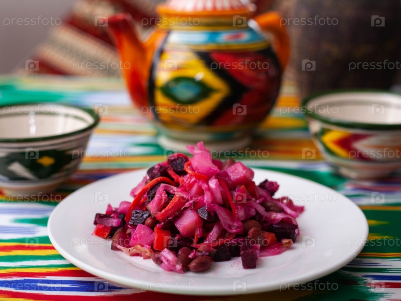 Салат «Венигрет» — свекла, картофель, лук и квашеная капуста. Азиатский стиль