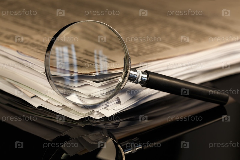 Лупа и стопка документов