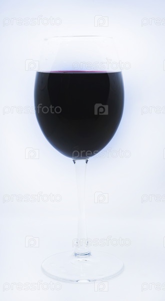 Стеклянный бокал на белом фоне. Красное вино