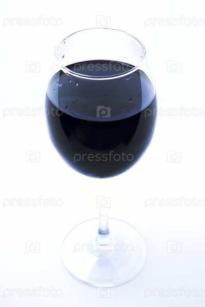 Стеклянный бокал на белом фоне. Красное вино