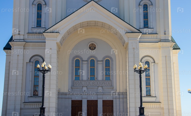 Спасо-Преображенский Кафедральный собор. Хабаровск. 2019 год. Надпись: Христос Воскрес