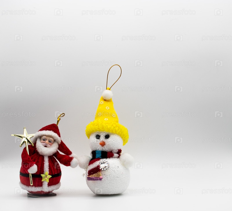 Дед Мороз и снеговик на белом фоне
