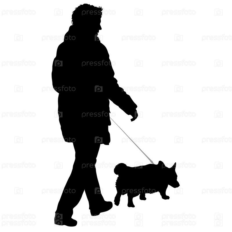 Силуэт женщины и собаки на белом фоне