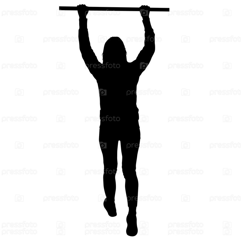 Женщина делает подтягивания силуэт на белом фоне