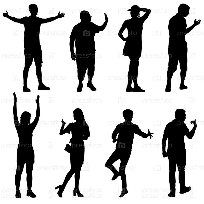 Силуэт группы людей, стоящих на белом фоне