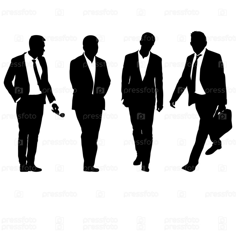 Установите силуэт бизнесмена в костюме с галстуком на белом фоне