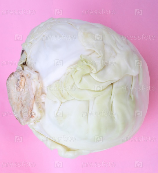 Глава белокочанной капусты на розовом фоне
