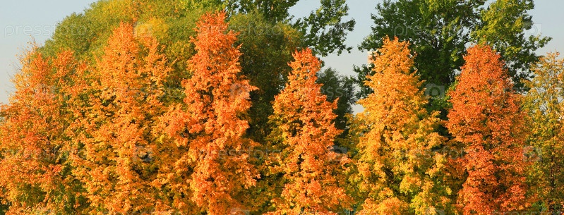 Городской парк золотой осенью, сентябрь, утро