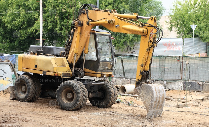 Колесный экскаватор на земле