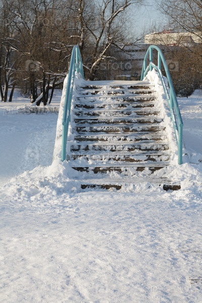 Мост через пруд зимой