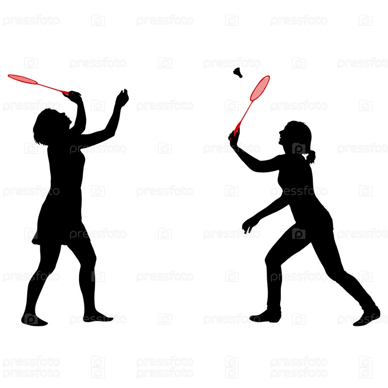 Черный силуэт бадминтонистки на белом фоне