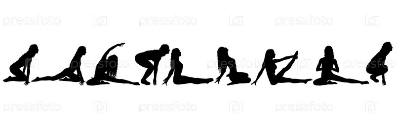 Установить силуэт девушки на занятиях йогой в позе на белом фоне