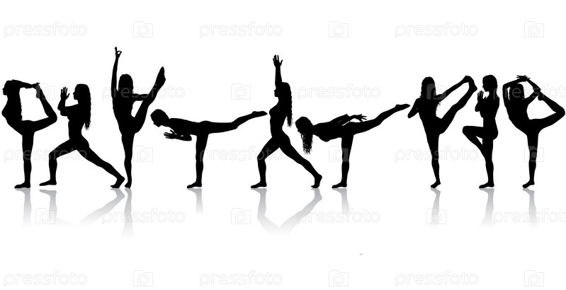 Установить силуэт девушки на занятиях йогой в позе на белом фоне