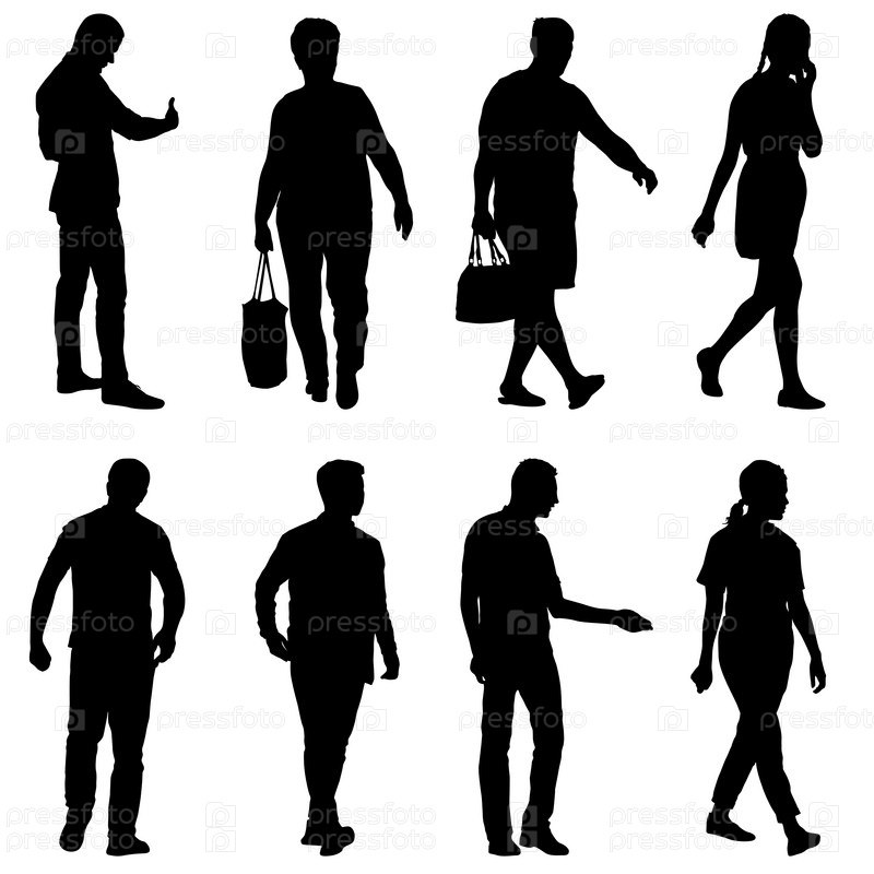 Силуэт группы людей, стоящих на белом фоне
