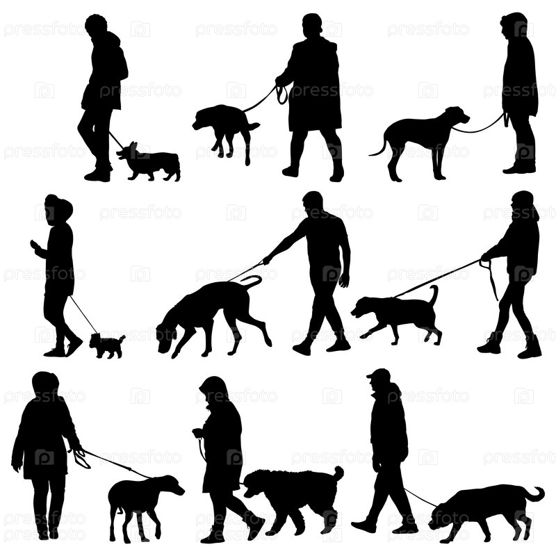 Установите силуэт людей и собаки на белом фоне