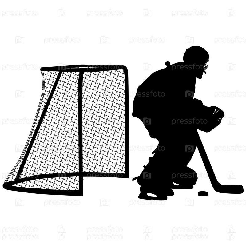 Силуэт хоккейного вратаря на белом фоне