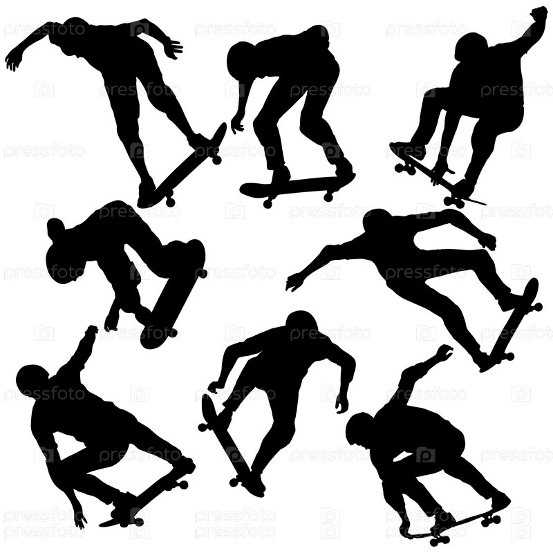 Установите черный силуэт спортсмена-скейтбордиста в прыжке