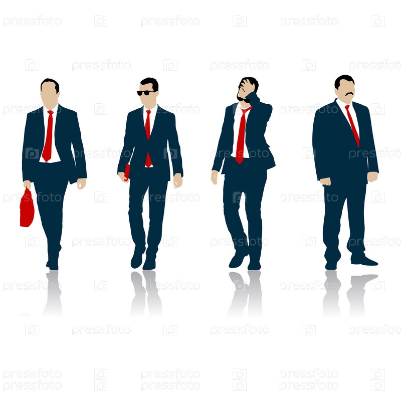 Установите силуэт бизнесмена в костюме с галстуком на белом фоне