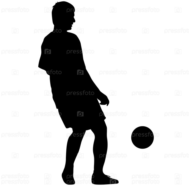 Силуэты футболистов с мячом на белом фоне