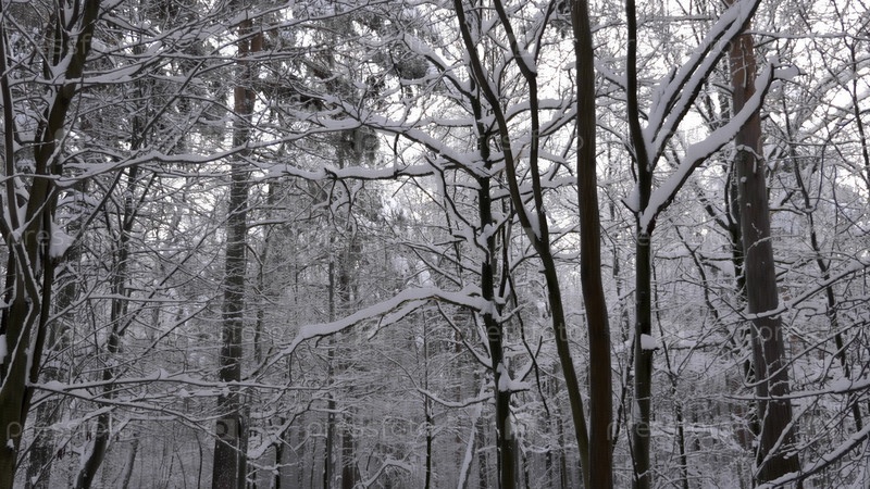 Зимний лес во время снегопада, замедленная съемка