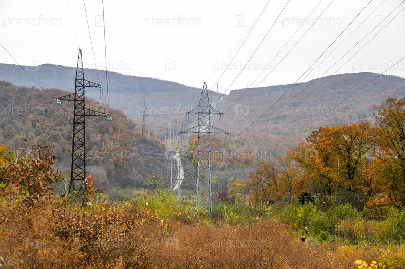 Линия электропередач в осеннем лесу