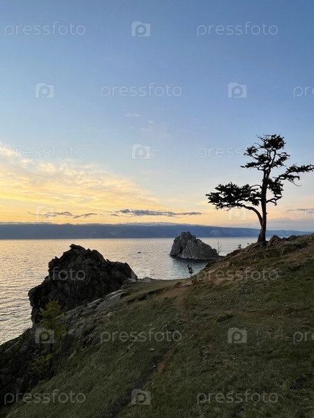 Скала Шаманка на острове Ольхон на закате, озеро Байкал, Россия