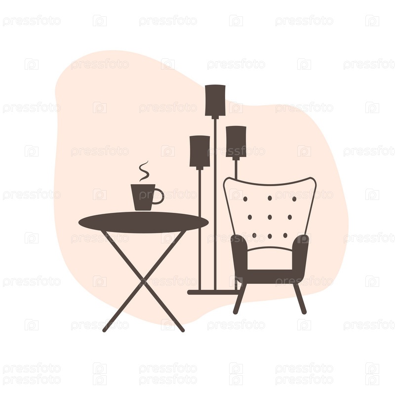 Журнальный столик, кресло, торшер. Плоская иконка