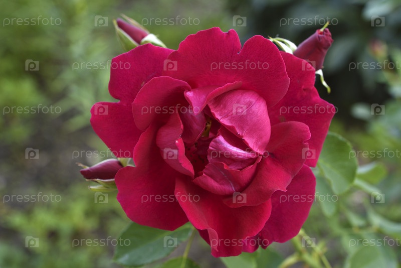 Большая красная роза на кусте. Красивый красный цветок летом