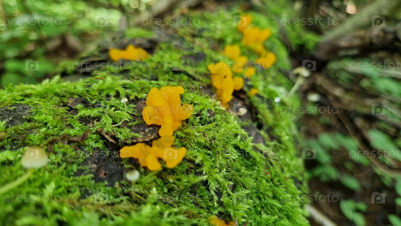 Грибы на упавшем дереве.