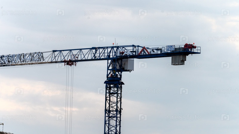 Москва, 01 июля 2023 г., синий башенный кран крупным планом