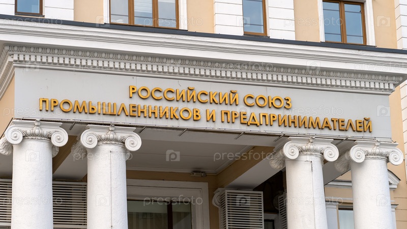 Москва, 01 июля 2023 года, вывеска на фасаде Российского союза промышленников и предпринимателей, крупный план