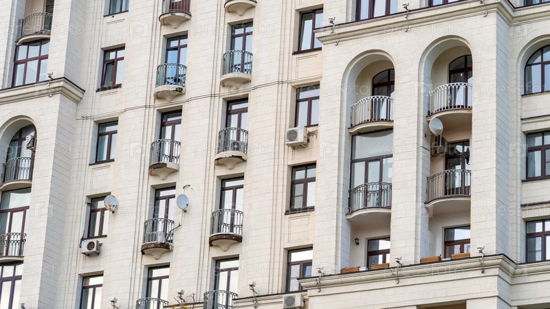 Москва, 01 июля 2023 г., Высотное здание на Котельнической набережной крупным планом декоративные элементы фасада
