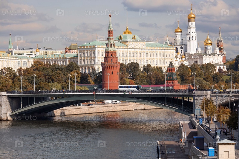 МОСКВА, РОССИЯ - 26 СЕНТЯБРЯ 2023 г.: Вид на Москву в осенний день. Столица России. Большой Кремлевский дворец. Кремлевская набережная. Москва-река. Популярная туристическая достопримечательность