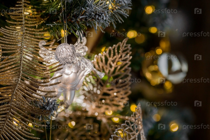 Стильный кристально-прозрачный ангелочек на елке. Концепция украшения елки в интерьере и стильный Новый год и Рождество 2024