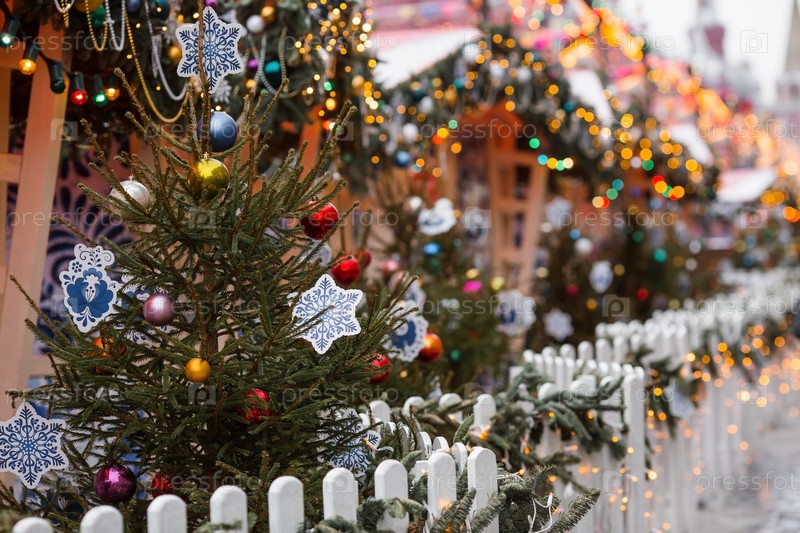 Рождественское украшение Красной площади. Красивые праздничные украшения в городе. Рождественские украшения улиц. Москва, Красная площадь, декабрь 2023 г
