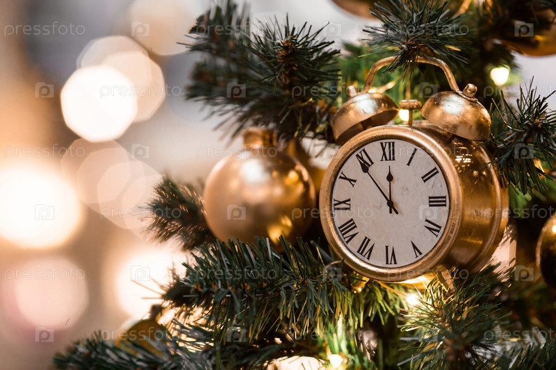 Обратный отсчет до полуночи. Часы последних мгновений перед Новым годом. Стрелки часов без пяти минут 12. Красивый фон на Новый год или Рождество 2024 года