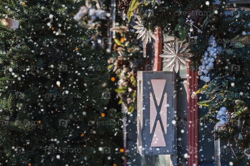 Красивые праздничные украшения на улицах Москвы. Красивый рождественский фон. Концепция украшений и декора к новому году. Новогодняя открытка 2024