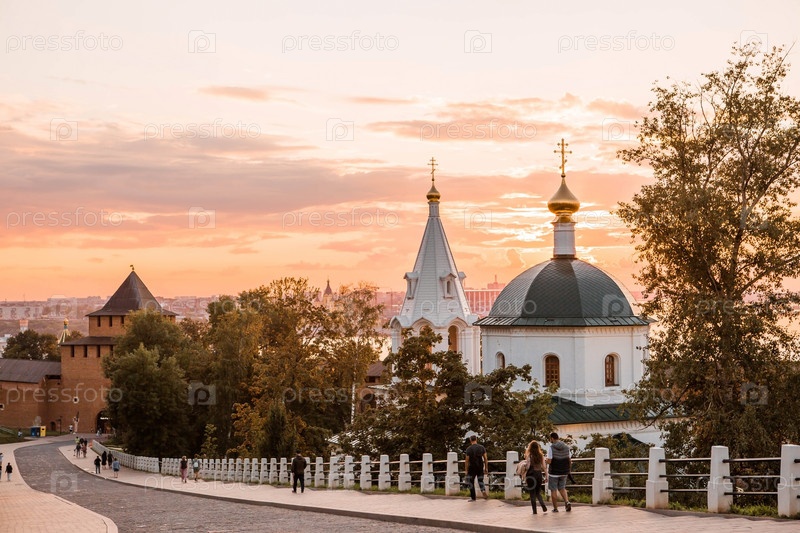 Церковь Симеона Столпника и Белая башня на закате. Нижегородский Кремль. Россия, Нижний Новгород, август 2023 г
