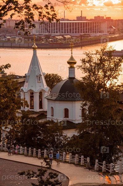 Церковь Симеона Столпника и Белая башня на закате. Нижегородский Кремль. Россия, Нижний Новгород, август 2023 г