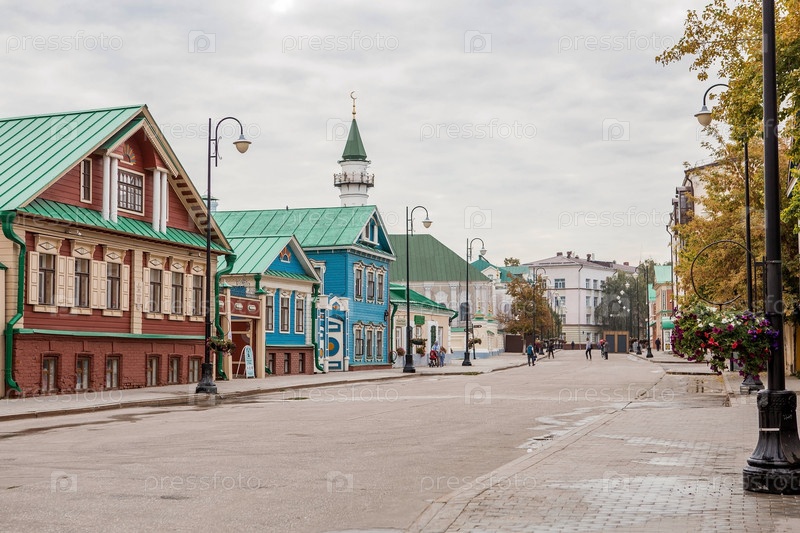 Улица Каюма Насыри. Старо-Татарская слобода. Мечеть Аль-Марджани. Летний день. Россия, сентябрь 2023 года. Республика Татарстан. Казань