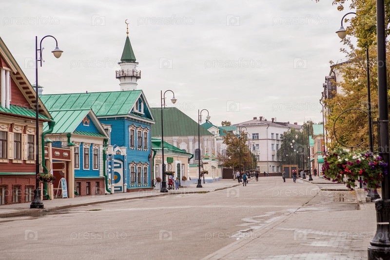 Улица Каюма Насыри. Старо-Татарская слобода. Мечеть Аль-Марджани. Летний день. Россия, сентябрь 2023 года. Республика Татарстан. Казань